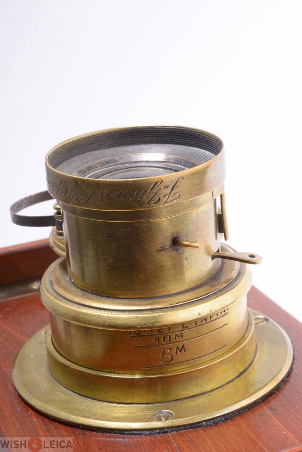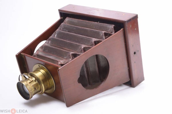 Rare and early J. Zion shutter and lens. Most probably the camera is also made by Zion. Original red leather bellows is light leak free. Shutter works. Has only a B setting.