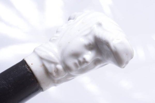 ANTIQUE CANE WALKING STICK UNPAINTED PORCELAIN MEISSEN DRESS POMMEL 85.5CM 33”