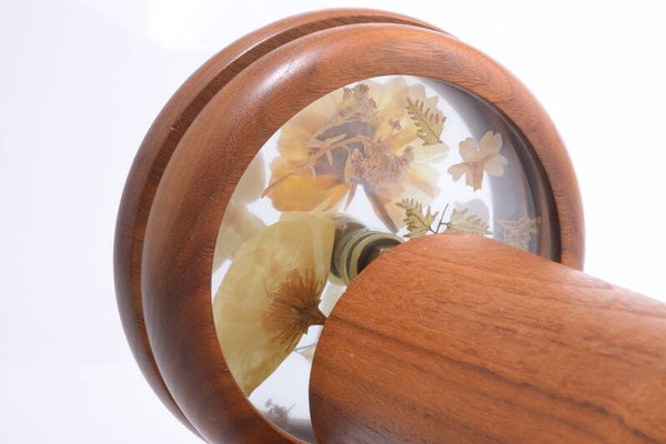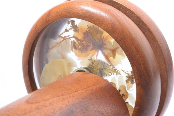 WOOD KALEIDOSCOPE PRESSED FLOWERS 29.5CM, 11.61” *RARE* W/ CORKI WEEKS STAND