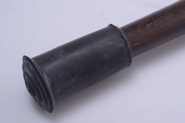 Shows some signs of prior use and is in very good condition. Shaft shows some scuffs, some dings and some small scratches, no cracks. Lacquer is in good condition. Has a light weight sturdy shaft and an later added rubber tip.