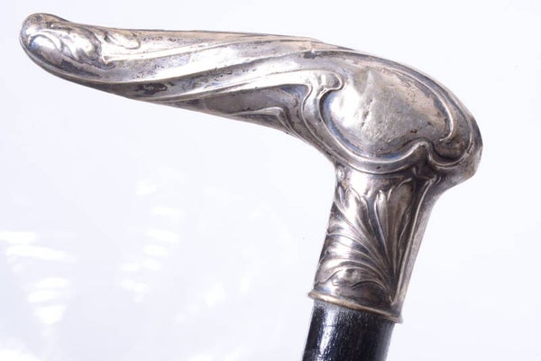 ANTIQUE CANE WALKING STICK SILVER HALL MARKED ART NOUVEAU HANDLE 81.5CM 32.08”
