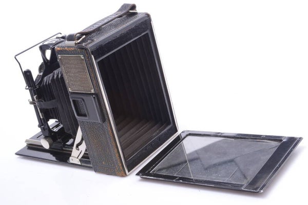 Otherwise the camera shows some signs of prior use and is overall in good condition. Shows some scuffs marks, few small scratches, no cracks, some wear. ‘Focus screen’ is plain glass and needs to be replaced by a ground glass to be able to focus. Focus moves smooth. Cover shows some wear.