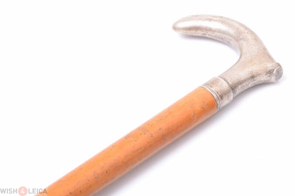 A real nice walking stick. Handle feels very good, at its widest 99mm, 3.9”. The arch is 6.5cm, 2.56” wide. It is 80cm, 31.5” in length. Nice cane, light weight. Weight is 285Grams, 10.05oz. C. 1900. Is fully original and shows no repairs. Knob feels like as being solid silver, but I’m not sure.Shows some signs of prior use and is in good condition. Shows some scuffs and scratches, no cracks. Lacquer in good condition. Has a thimble tip, was added later, and a light weight sturdy shaft.