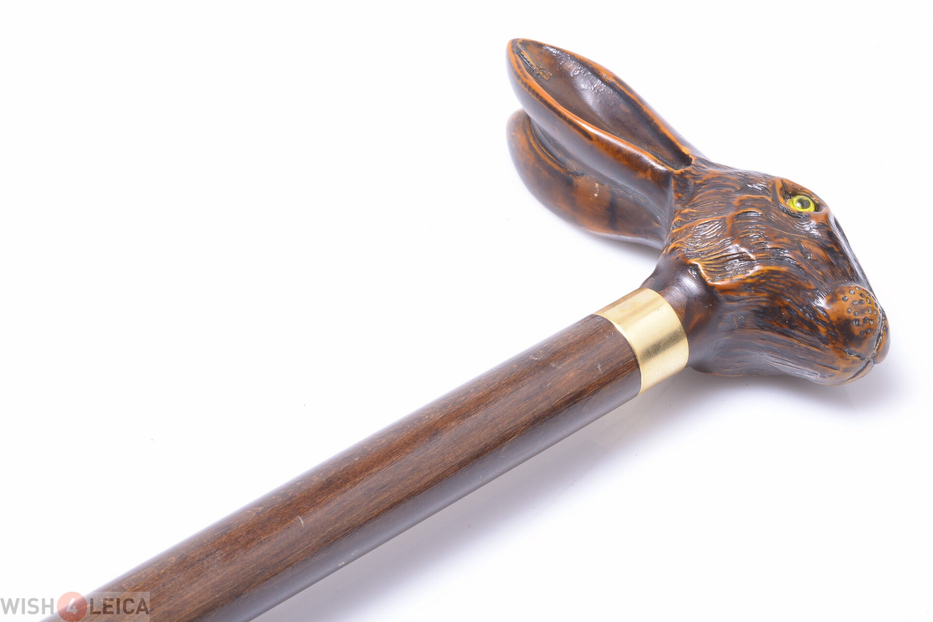 ANTIQUE CANE WALKING STICK HARE SCULPTED RESIN HANDLE GILDED RING BEECH SHAFT