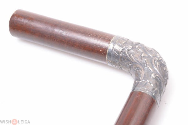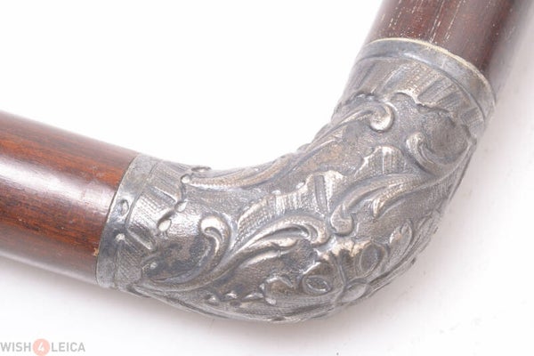 A very nice walking stick. Made c. 1900. Handle shows some signs of prior use and is in good condition and feels good. Nicely detailed floral motive. Total length is 89cm, 35.04” in length. Weight is 236Grams, 8.30oz. Shaft is in very good condition, shows minor scuffs and scratches, small crack just below the silver part. Has wood tip and very sturdy shaft.