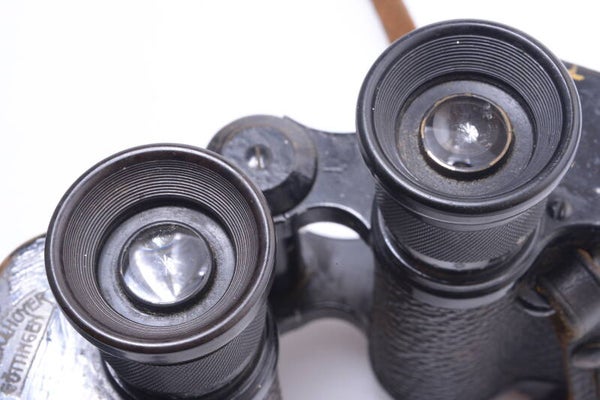 Original German WWII Dienstglass binoculars. Comes with leather strap. Reticle in the right hand side ocular. Note the eye cups are original and undamaged. Cover original and in good condition. Perfectly collimated.