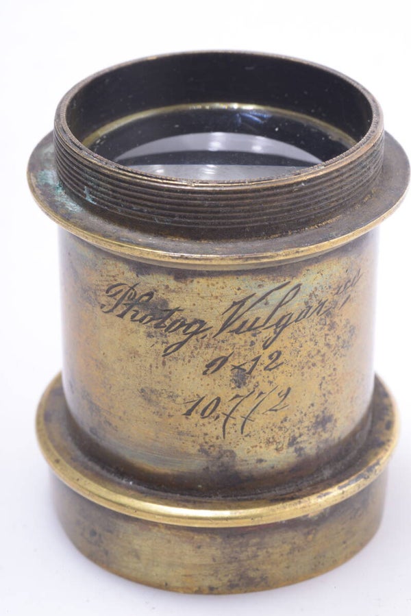 PHOTOG VULGAR 9X12 BRASS ANTIQUE LENS FIELD CAMERA APPROX.130MM SINGLE ELEMENT