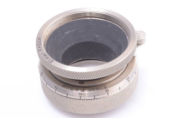 Nickel plated focus mount shows minor signs of prior use and is in very good condition. Works flawless. Shows minor scuffing, no scratches, no dings, no indentations.Bayonet and screw threads in very good condition. Focus turns smooth.With an Leica M lens adapter and a 50mm collapsible lens you can use live view on your digital camera and close focus.