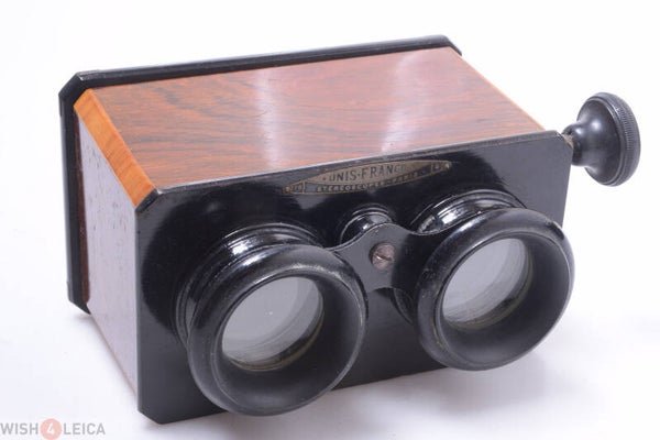Original Unis France stereo viewer with slot for images, focus capabilities, large elements. Ground glass holder ‘lock’ is missing