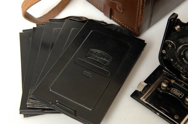 Camera is overall in excellent++ nice condition considering its age and fully original. Show some signs of prior use. Scuff marks and wear on the original leather. But still in very nice condition. Lens no scratches, no cleaning marks, slight haze, no fungus! Metal parts shows no corrosion. Aperture and shutter speeds setting smoothly. Shows wear on the aperture and shutter blades, but are clean. Bellows in good condition. Tilt and shift functions are work. Shutter works and is pretty accurate, slower speeds tiny bit to fast! Ground glass in good condition. Camera comes with leather case and 5 original plate holders.