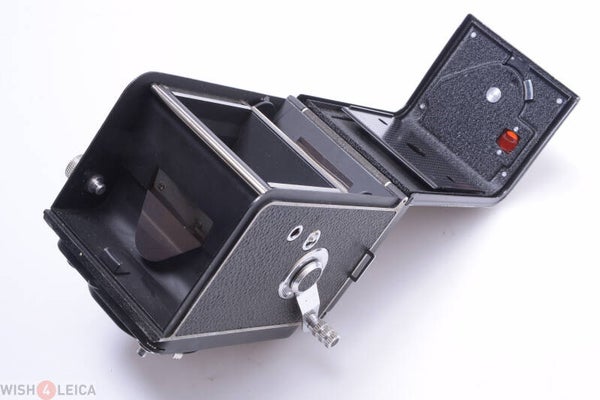 Camera shows some signs of prior use and is in very good condition. Shows some paint rub off at the bottom and film door corners, see picture. Furthermore no dings, no dents, no scratches, some small scuff marks, no bright marks, some handling wear. Cover is complete and in very good condition. Finder shows no dust particles. Magnifier is clean and shows no anomalies. Focus screen shows a bright image. A very nice conditioned Sem Otomatic. Comes with original leather case and filter.