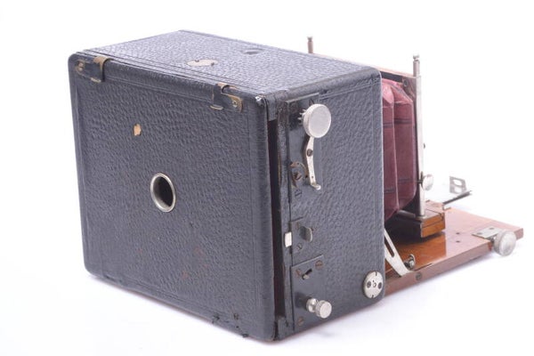 Quite rare model and a beautiful model with these nickel plated fittings, focal plane shutter and red bellows.