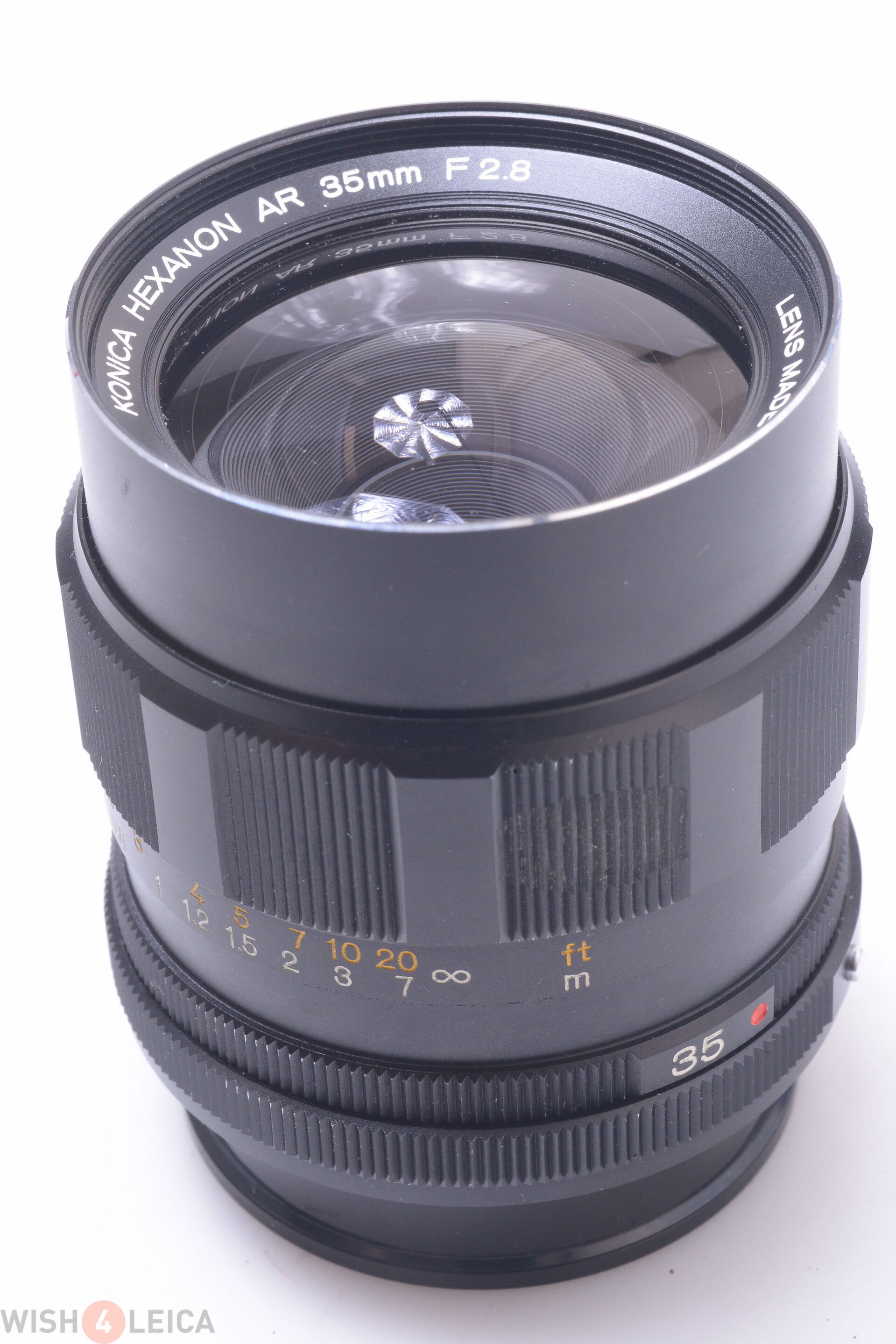 KONICA 35MM 2.8 HEXANON AR LENS W/ CAPS, HOOD & KEEPERS