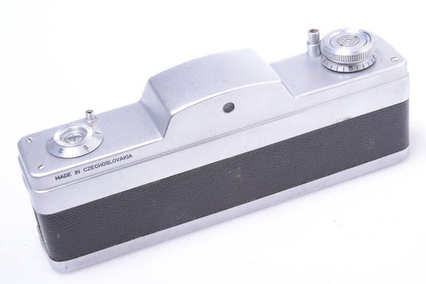 The lens elements are in very good condition. Show no cleaning marks, no scratches, no fungus, no separation, no haze on or in between the elements. Comes with one film spool. Nice camera.