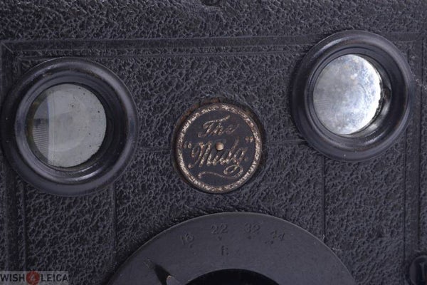 Shutter works speeds are irregular. It is in incredible good original condition. 100+ years old. The handle is torn at one side on top of the handle the name and model ‘Midge No.0’.