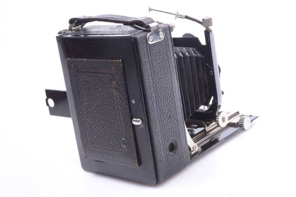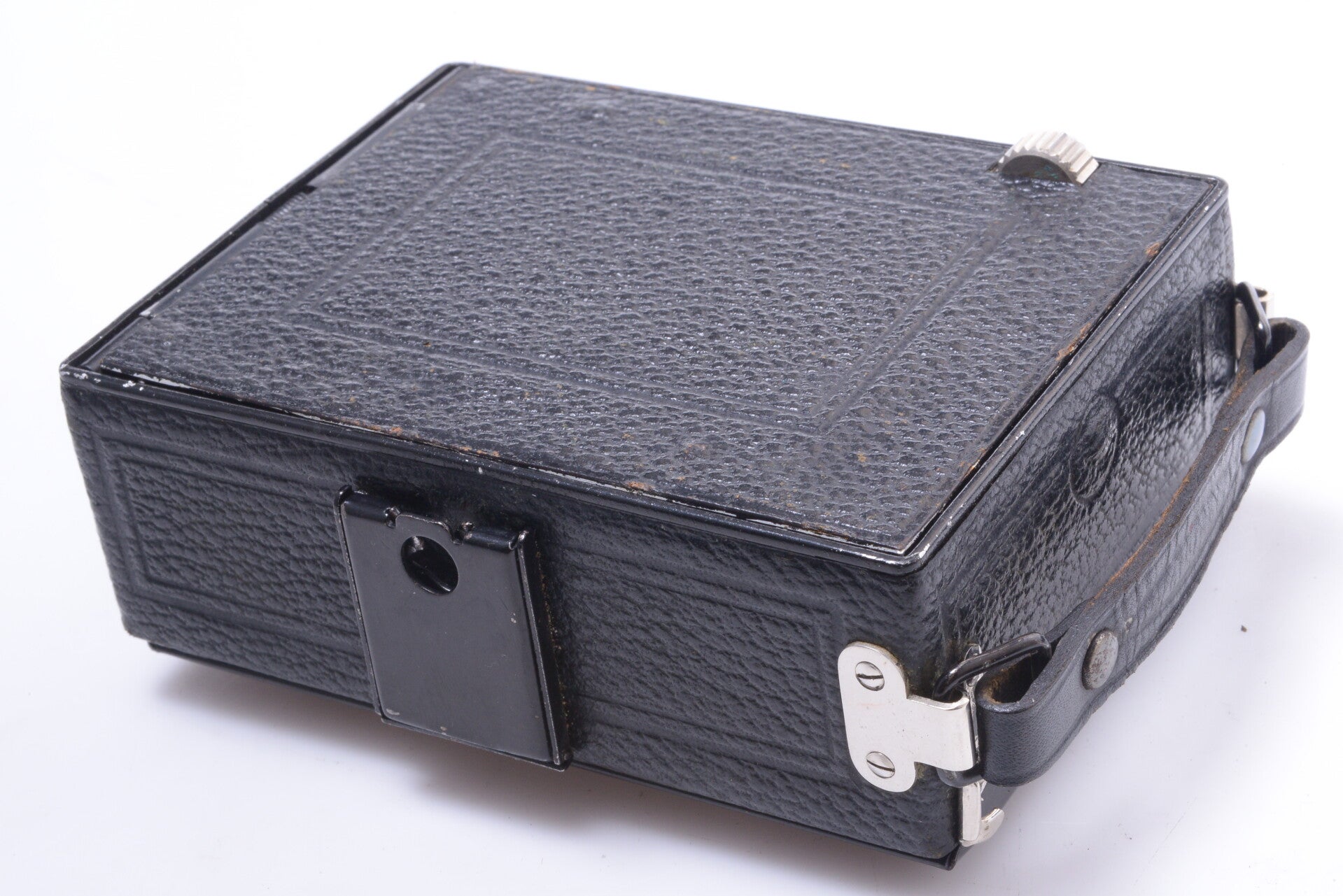 This camera has a yellow filter installed on the wire frame finder and a rare magnifier aid for focussing. Never saw a magnifier on this type of camera.