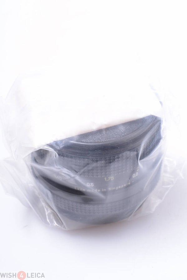 Lens shows no signs of prior use and is in new condition. Shows no scuffing, no scratches, no dings, no indentations. Aperture setting moves smooth. Lens comes with both original caps. Very nice high quality lens. Comes complete in original makers box.