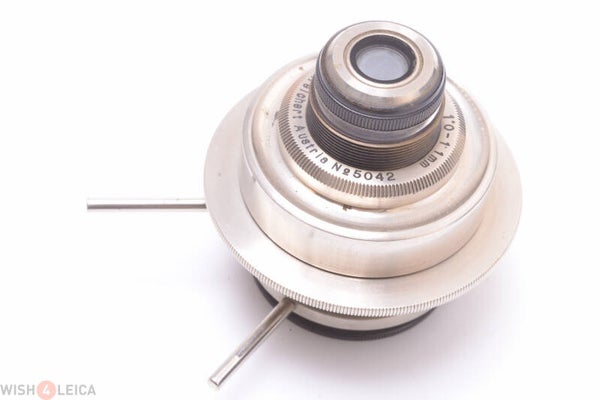 REICHERT NICKEL PLATED 39MM DIAMETER MICROSCOPE CONDENSER W/ DOUBLE APERTURE