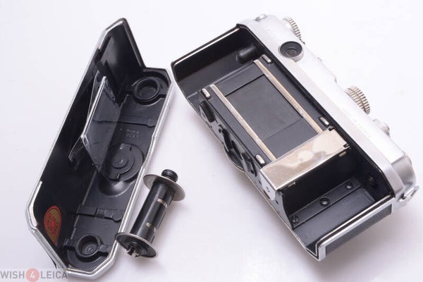 Camera is overall in good condition with some signs of prior use. Shows some wear at the leatherette. Imprint of a button due to a ready case used in the past. No dents, no dings on the camera. Chrome show some blistering at the bottom plate. Camera top shows minor wear, scratch on the accessory shoe. Bottom plate shows some scratches and some wear. Shutter works, but longer speeds don not work correctly. B setting works. Smooth focussing. Adjusting the shutter speeds and aperture is smooth. Aperture blades and shutter blinds in perfect condition and light leak free. Lens elements are in good condition. Show some cleaning marks/superficial scratches, no fungus, no separation, no haze. The original cover doesn’t mis a piece. Finder is nice, bright and clean. A nice conditioned camera. Comes with original rubber lens cap.