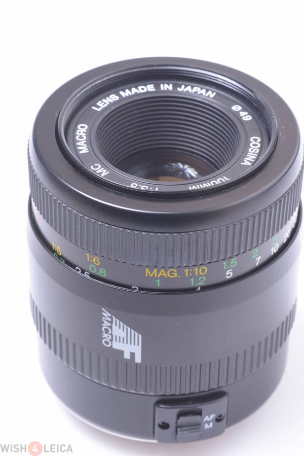 The lens is cosmetically and mechanically in very good, mint condition. Barrel shows no dings, no dents, no cracks, no scuff marks and no scratches. The elements are in very good, perfect condition. No cleaning marks, no scratches, no haze, no fungus, no separation, no dust particles. Focus turns smooth, AF works. Aperture blades show no wear and are clean. Aperture open and close perfectly and smooth. Comes with caps, original makers box and 1:1 adapter.