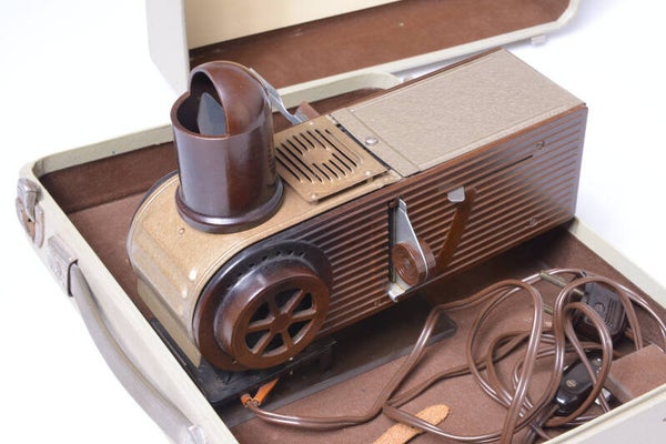 Projector is in excellent+ condition and works flawless. It shows minor signs of prior use. Lens in good condition.Comes in carry case with some signs of prior use and 1 slide holder. Has been tested.