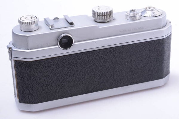 Camera shows minor signs of prior use and is in very good condition. Shows very light scuffing at the bottom, no scratches, no dings, no dents, no paint rub off. Some handling wear. No wear at the cover. Finder is very bright and clean. Shutter works at all speeds. Blinds are light leak free. Film winds on smoothly. Comes with cap en take-up spool.