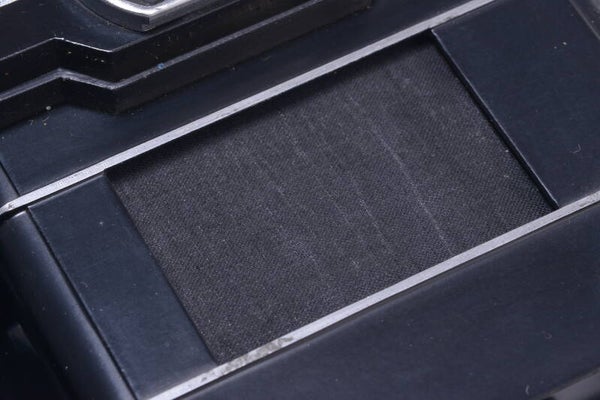 Camera shows minor signs of prior use and is in very good condition. Some one bump underneaths the cover at the film door. Shows no scuffing, few tiny scratches, no dings, no dents, really minor paint rub off. Minor handling wear. No wear at the cover. Finder, prism and mirror is bright and clean. Film winds on smoothly. Self timer works. Comes with film take up spool. Sold As-Is.