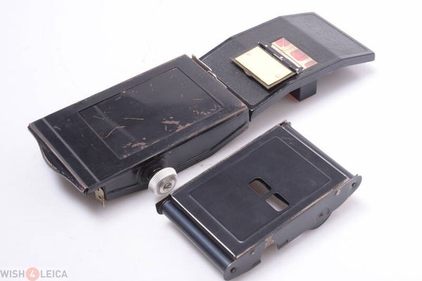 Film back show some signs of prior use and is overall in very good condition. Shows small scuffs, few small scratches, no dings, no dents, some paint rub off..Works perfectly. Film winds on smooth. Guide rail is 1mm thick and slides into the back of the camera for 93mm. Check your camera if that would fit.Film frames negatives will be 6x9cm in size!