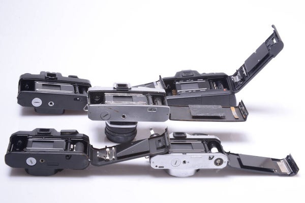 Cameras overall in fairly good, some clearly used condition, with moderate signs of prior use. For details of cosmetics see pictures. Comes with all that is pictured. Sold for parts or repair.. No returns.