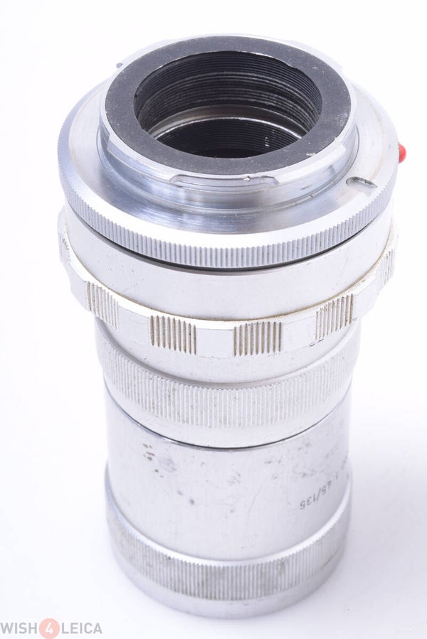 All are in good condition, with moderate signs of prior use. No dings, no dents, some rub marks and scratches on the tubes and focus mount. Works perfect. Focus ring turns smooth. Threads and bayonet are in perfect condition. To use the 65mm, 90mm, 135mm Elmar and Hektor lens heads on a bellows II set-up together with a Visoflex II or III system, or only with a Visoflex system as a reflex system on your Leica M camera. Or with live view just like this for macro shots. It will loose infinity than.