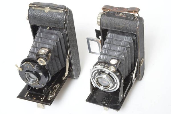 Cameras are overall in fairly good condition with moderate signs of prior use. Show paint loss. No dents, no dings. Moderate wear on the leatherette. Still nice conditioned camera. Shutters stuck on the Franka. Welta camera works and in fairly good condition. Lens elements are in fairly good condition. Slightly hazed, no scratches, no cleaning marks. Bellows light leak free. Opens and close like it should. Sold as is. Shutter hangs on the longer speeds on the Wirgin.