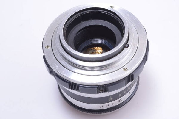 The lens elements are in very good condition. No scratches, minor cleaning marks, no haze, no fungus, no separation. Coating in perfect condition. Shows no dust particles inside. Focus moves smooth. Aperture in good condition, shows no wear and some minor oil on the blades. Comes without cap.