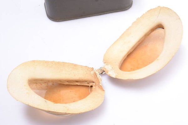 Glass shows smudges on the celluloid. Rubber a bit deteriorated and warped. Single side element size is 4.7x8.5cm
