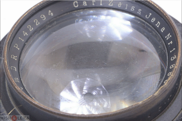 A vintage large format lens in fairly good condition. Front screw thread is damaged. The barrel shows moderate signs of prior use, mostly at the front of the lens barrel paint rub off. And dings on the front ring. See pictures. The rear and front element are in fairly good condition. Show cleaning marks, slight haze, No fungus, no separation, no scratches on or in between the elements. Some dust particles in between the elements, also cleaning marks on the inside. Aperture blades are missing. So, no aperture blades. Lens needs a app. 6.5cm diameter lens board hole. Has a 65mm thread. Lens comes without lens retaining ring.