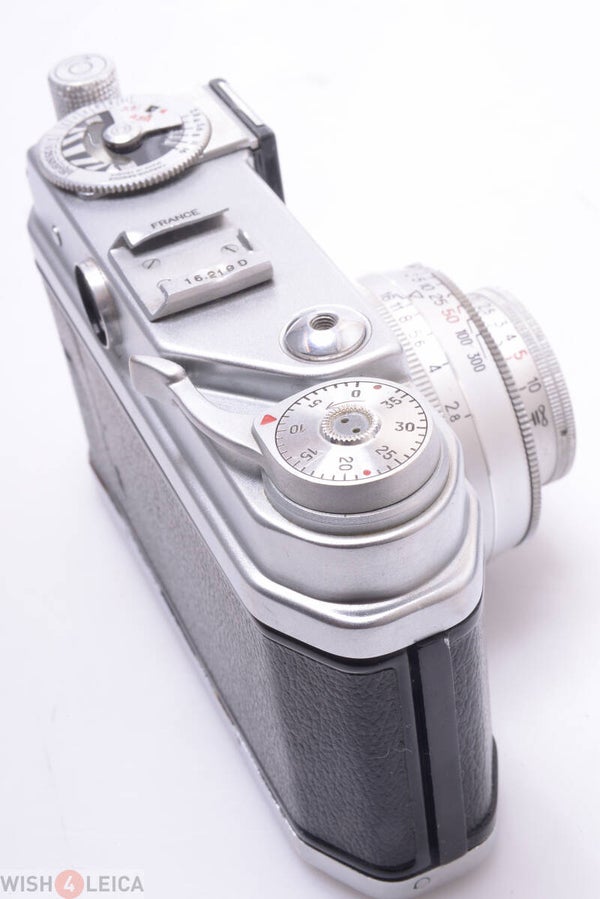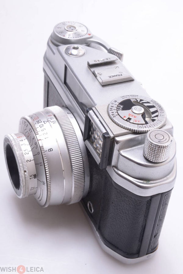 Camera is overall in good condition with minor signs of prior use. Shows wear at the leatherette. Indentation at the back. No dents, no dings at the camera. Shows some damage to the accessory shoe. Camera top shows minor wear, some wear at the accessory shoe. Bottom plate shows minor wear, just some scratches at the elevated roundels. Shutter works and faster speeds are accurate, longer speeds also. B setting works. Smooth focussing. Adjusting the shutter speeds and aperture is a bit stiff. Aperture blades and shutter blades in good condition and light leak free. Lens elements are in good condition. Show minor transparent spots on the inside. Lens shows no cleaning marks, no scratches, no fungus, no separation, no haze. The original cover doesn’t mis a piece. Finder is fairly nice, bit cloudy. A nice conditioned camera.