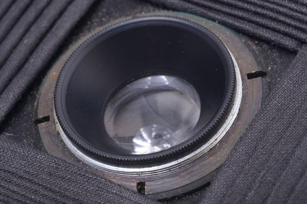 Camera shows minor signs of prior use and is overall in very good condition. Shows minor scuffs at the corners, no scratches, no dings, no dents, minor paint rub off. Minor wear at the cover. Finder is in very good condition. Film winds on smooth. Bellows light leak free.