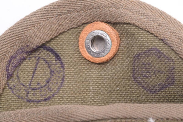 Rear and side parts are in good condition. The head band has still some elasticity left in it and is complete. Comes with pouch, not sure if original, and can’t read the marking of the pouch.