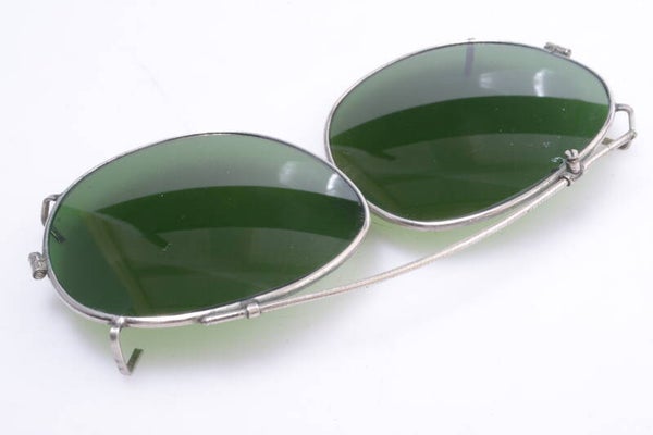 SUN GOGGLES GLASSES CLIP ON DARK GREEN VINTAGE, ANTIQUE c.1950