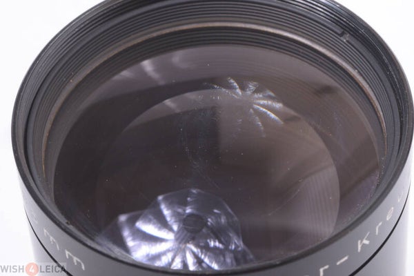 The lens is cosmetically and mechanically in very good, mint condition. Lettering is bright. Barrel shows no signs of prior use. Barrel shows no dings, no dents, no scuff marks, no paint rub off and no scratches. The elements are in very good condition. Shows no cleaning marks, no coating problems, no scratches, no haze, no fungus, no separation. Shows no dust particles inside. Aperture blades show some wear and are clean. Aperture open and close smooth. Focus turns very smooth. Comes with original bubble keeper and hood.