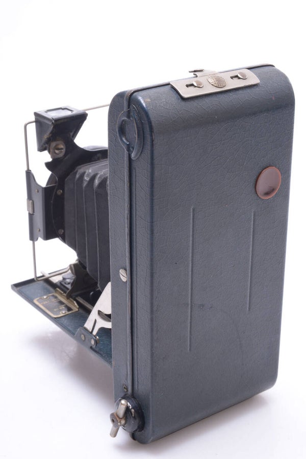 HOUGHTON ‘BLUE COLORED’ ENSIGN ALL DISTANCE POCKET CAMERA 6X9CM 120 ROLL FILM