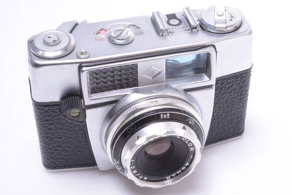 Cameras in similar nice condition. The cameras show some wear at the cover. Cover is complete and nothing missing. The top-plate shows no scuff marks, no dings, no dents.Some wear on the bottom of the camera, scuff marks to the metal. Some paint wear at the hinges and the film door. Shutter speeds are accurate, longer speeds also. Finder is clean and bright. Winds flawless and smooth. Light meter works and is accurate. Focus ring turns smoothly, but missing the DOF/distance scale of the Optima camera. Aperture blades show no wear and are clean and open and close smoothly. All settings move freely and smooth. Shows wear to the lens retaining ring of the first Optima.