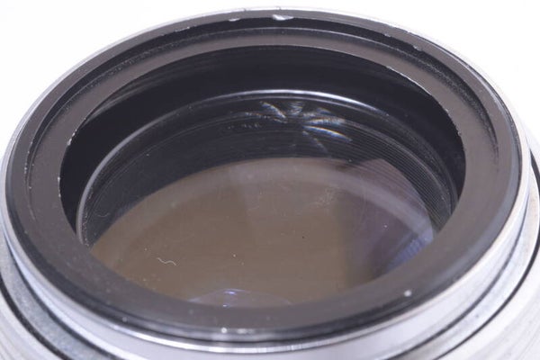 The lens is cosmetically and mechanically in good condition. Lettering is bright and clean. Barrel shows no dings, no dents, some paint rub off, some scuff marks and shows scratches. Some damage to the filter ring. The elements are in good condition. Shows cleaning marks, some scratches, no haze, no fungus, no separation. Shows no dust particles inside. Focus turns smooth. Aperture ring moves smooth. Aperture blades show no wear and are clean. Open and close perfectly.