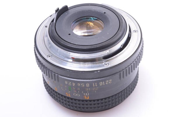 The lens is cosmetically and mechanically in very good condition. Lettering is bright and clean. Barrel shows no dings, no dents, some paint rub off, minor scuff marks and no scratches. The elements are in very good condition. No cleaning marks, no scratches, no haze, no fungus, no separation. Aperture blades show no wear and are clean. Aperture ring moves smooth. Focus turns smooth. Comes without lens caps.