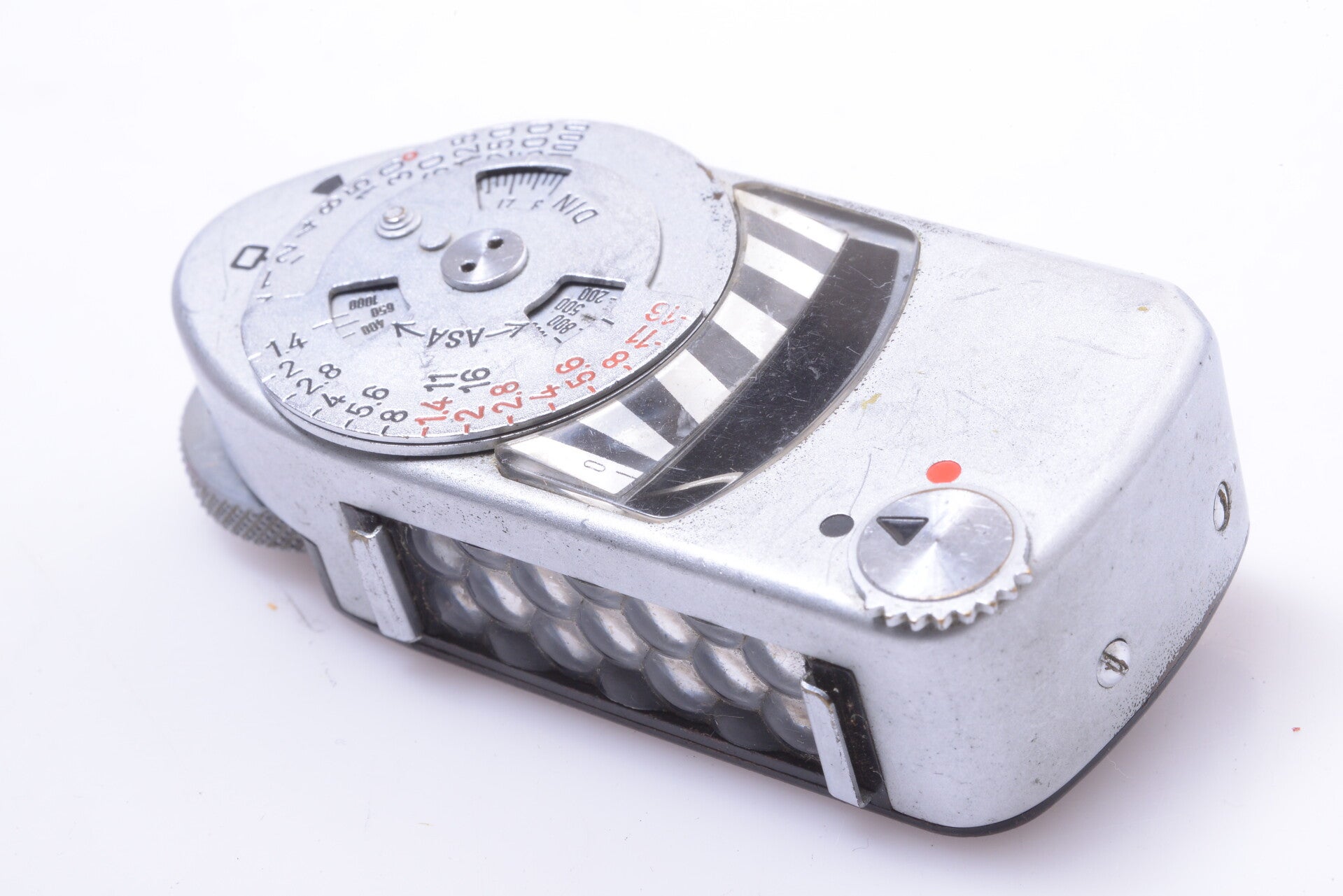 Meter is overall in good condition shows some signs of prior use.It shows scuffing, small scratches, no dings, one small dent at the top left rear corner, no cracks. Light meter in perfect functional condition. I tested it and it’s accurate. Coms with makers box, no serial number on the box.