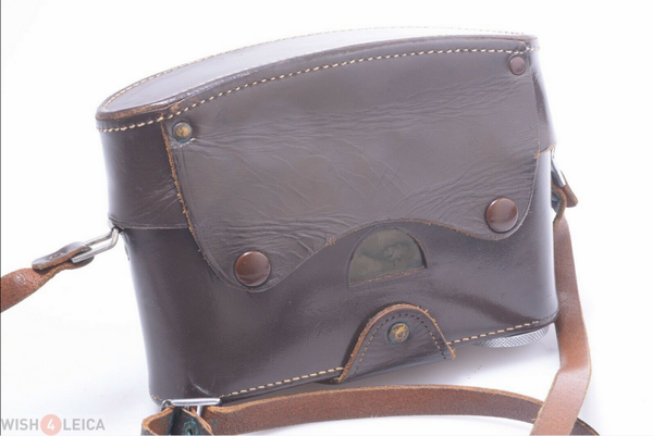 Original leather case is in overall very good condition. The case shows some small scuffs and bright marks is clean and leather is in very good condition. Inside is clean and complete. Stitches are in perfect condition. Strap in very good condition. Comes with original rubber shoulder patch. Note that it has the 3/8th screw attachment. The small plastic window at the back is intact and bright.