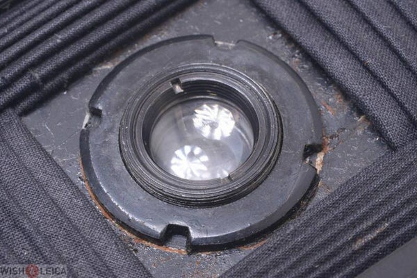 Camera shows moderate signs of prior use and is in fairly good condition. Finder shows a slight haze, no cracks to the glass. Shutter is working and speeds are accurate, B setting works. Show paint rub off. Cover is complete and shows some wear. The lens elements are in good condition. Show no cleaning marks, no scratches, no fungus, no separation, very slight haze on or in between the elements. Aperture blades and speed adjustments turn smoothly. Blades show wear and are clean. Bellows is light leak free. Focus turns smooth. A fairly nice conditioned camera ready for use. Collectors number sticker at the rear.