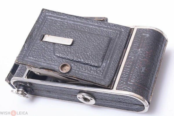 Camera shows moderate signs of prior use and is in fairly good condition. Finder shows a slight haze, no cracks to the glass. Shutter is working and speeds are accurate, B setting works. Show paint rub off. Cover is complete and shows some wear. The lens elements are in good condition. Show no cleaning marks, no scratches, no fungus, no separation, very slight haze on or in between the elements. Aperture blades and speed adjustments turn smoothly. Blades show wear and are clean. Bellows is light leak free. Focus turns smooth. A fairly nice conditioned rare Dutch brand camera. Foka bought bodies and assembled them in the Netherlands. Als brand naming them with the name of their own company Foka.