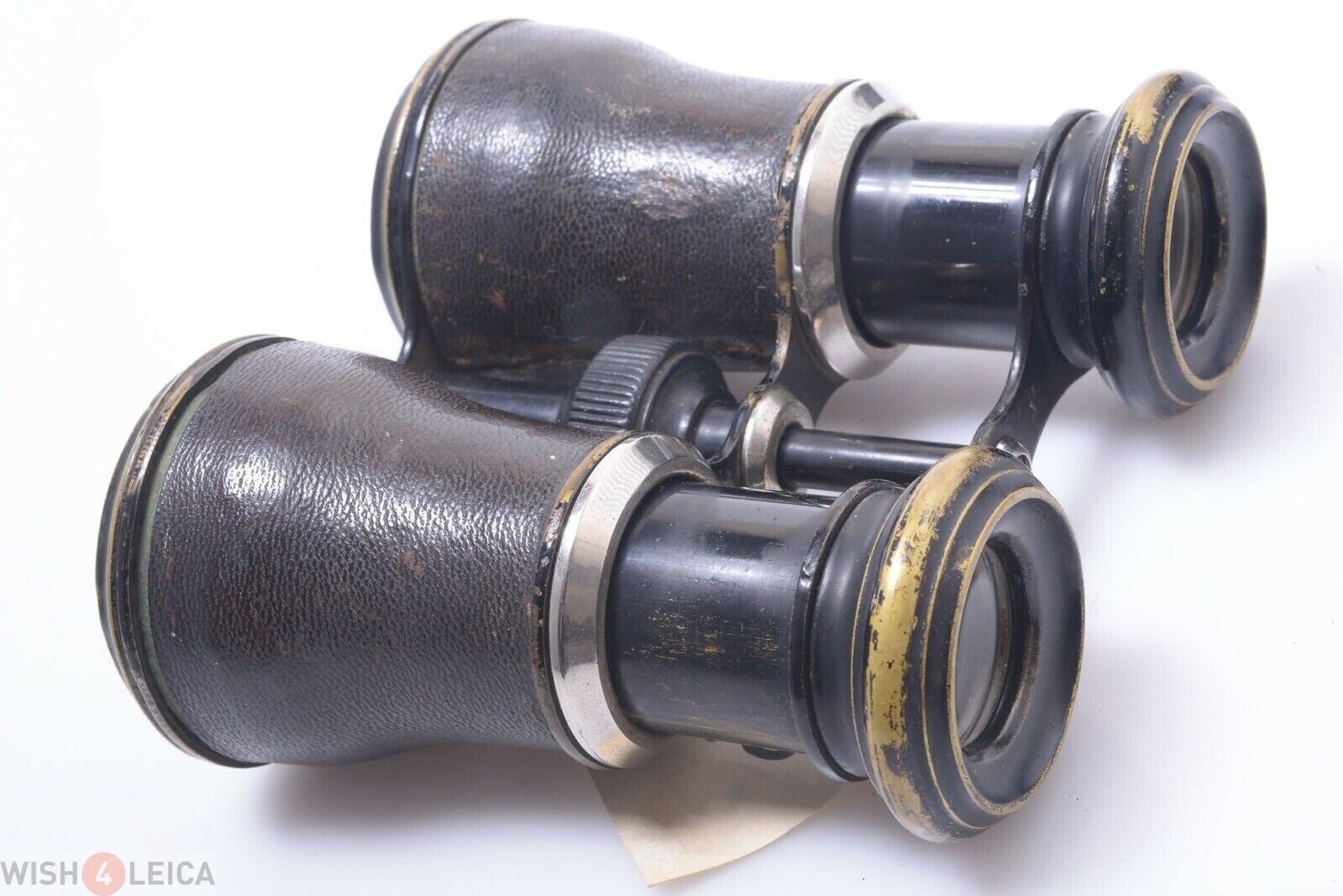 Binoculars are in good condition. All brass. Binoculars show signs of prior use. Shows some dings, few dents at the left side, wear at the eye cups, show paint wear, nice patina, and shows scratches at the metal parts. The elements are in good condition, no separation, no haze, no cleaning marks, no scratches, no fungus on or in between the elements. Some dust particles inside. View is bright. Cover original and complete. The focus ring turns smooth. Size is 5.2x11.8X9.8cm.