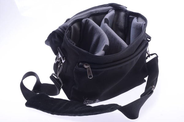 Original Yellow Moon black medium size camera shoulder bag. Outside dimensions 18x27x18cm.
