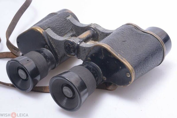 The binoculars in good condition. One small screw at left top-plate missing. Shows some dings, paint loss, no dents and shows scratches to the metal parts. The elements are in good condition, are well collimated, show no separation of the elements, no haze, no cleaning marks, no scratches, shows fungus. Both prisms are in good condition. Dust particles inside. After good and complete cleaning it will be much clearer. Still a sharp image. Eye-cups nothing missing. The focus ring turns smooth on the eye-piece they turn stiff. Original cover in good condition. Comes with strap.